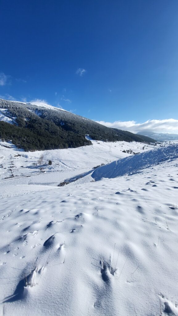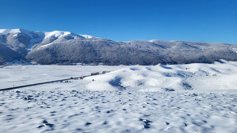 In inverno, come ti dicevo prima, è un altro mondo. Quando arriva la neve, l’altopiano si trasforma in un paradiso bianco, con paesaggi che sembrano usciti da una favola. Le temperature si abbassano, ma l’atmosfera è incredibile. Le montagne intorno si coprono di neve, e il silenzio che regna sovrano ti fa dimenticare tutto il resto. È il periodo perfetto per chi ama la neve e le attività all’aria aperta, ma anche per chi vuole semplicemente isolarsi dal resto del mondo.