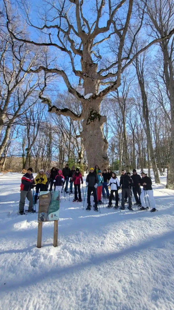 Durante una ciaspolata si cammina su sentieri innevati, si attraversano faggete silenziose, si ammirano paesaggi innevati e, con un po’ di fortuna, si possono avvistare animali come cervi, lupi o aquile reali. Il ritmo lento e la possibilità di immergersi completamente nella natura rendono questa attività unica nel suo genere.
